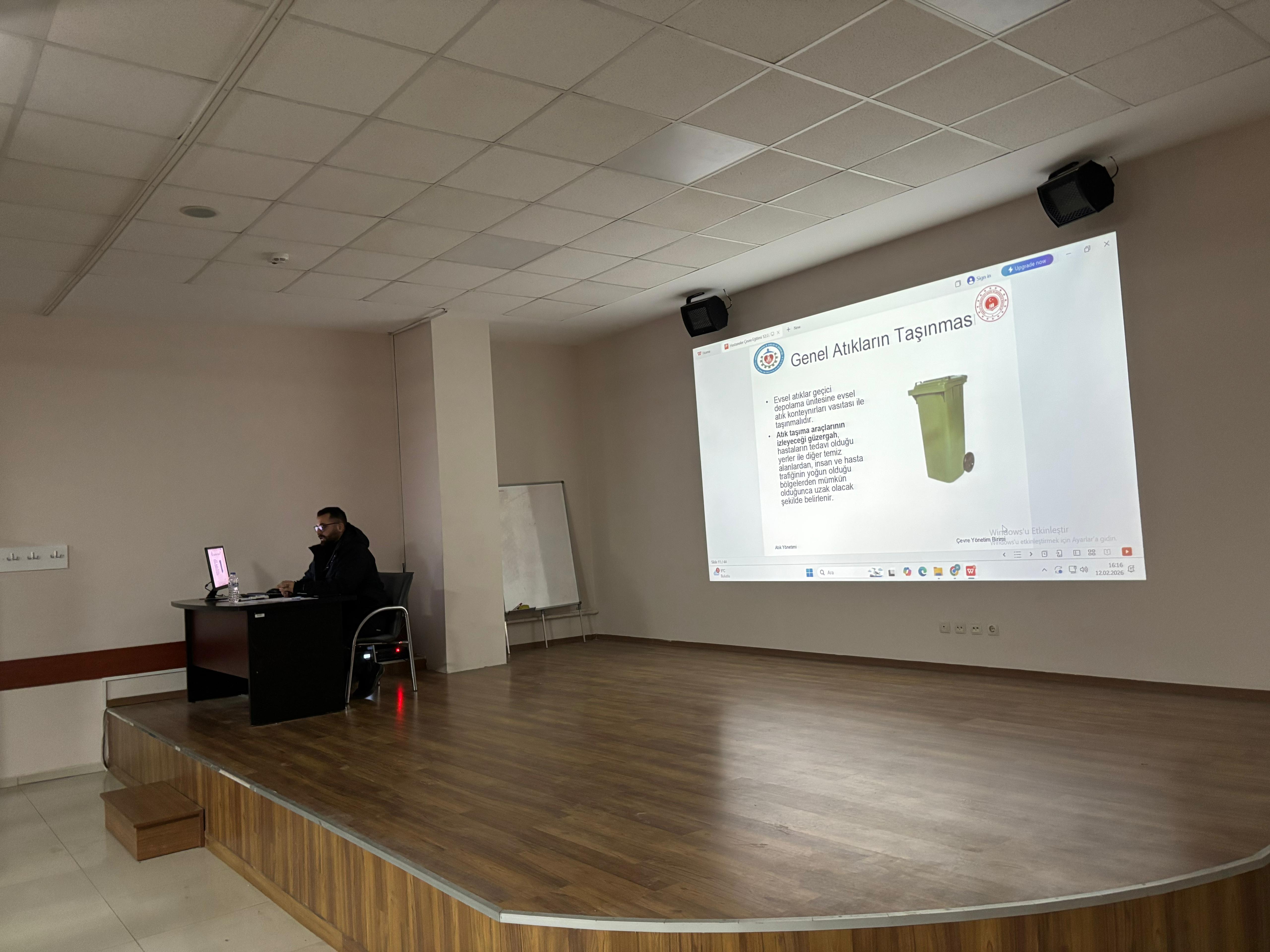 12.02.2026 tarihinde merkezimiz konferans salonunda hizmet içi eğitim kapsamında çevre mühendisi İsrafil AĞIR'ın sunumu ile Atık Yönetimi eğitimi verilmiştir.